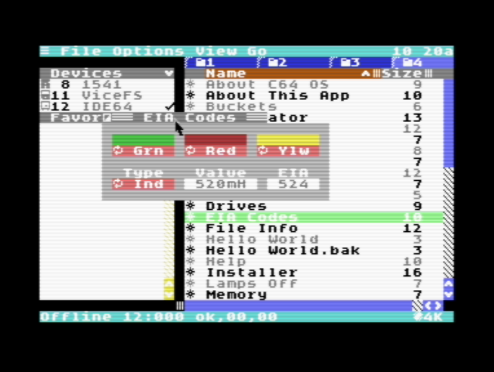 A Utility for reading and determining color codes and EIA numeric codes for resistors, capacitors, and inductors.
