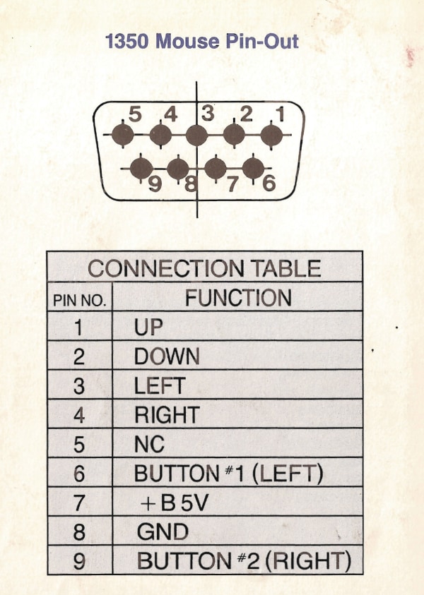 1350 pinoutPin 9 in the table above is listed as Button #2 (RIGHT). And if we look at the schematic further above, we can confirm that indeed Pin 9 goes to POT X.
