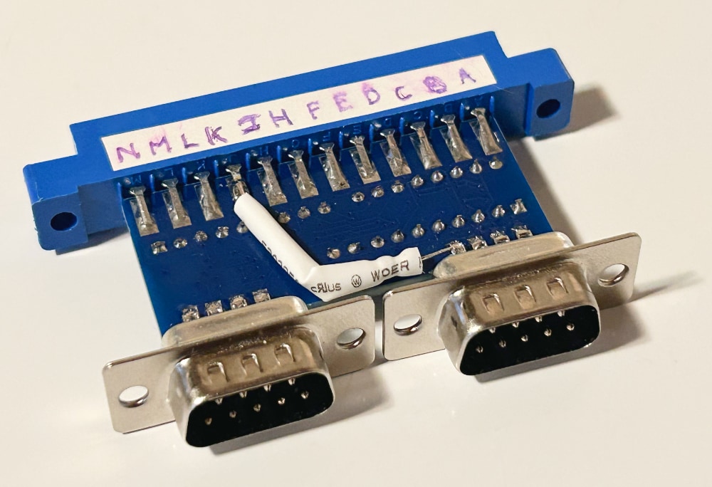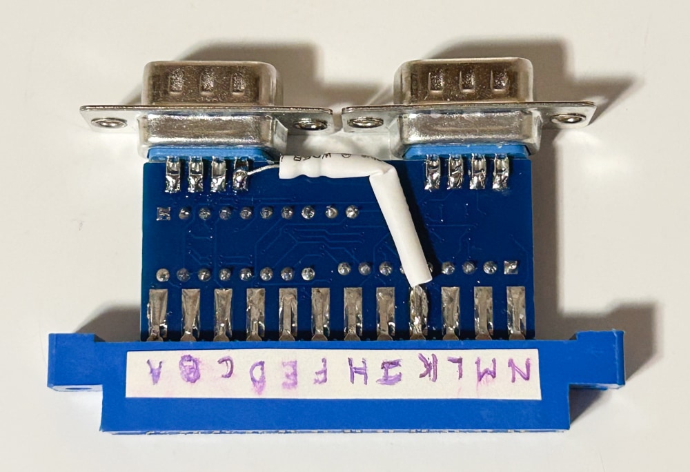 Since there is no POT X or POT Y line on the User Port, the pins 9 and 5 on the two controller ports on the 4-player adapter are just not wired up to anything. All we need to do is wire pin 9 (POT X, i.e., the NEOS mouse's right button) from one of the two ports to the unused Bit 6 on the User Port.