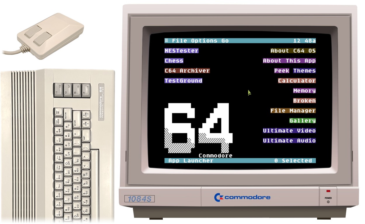 C64 OS v1.08 includes system-level files, plus, File Manager, App Launcher, Image