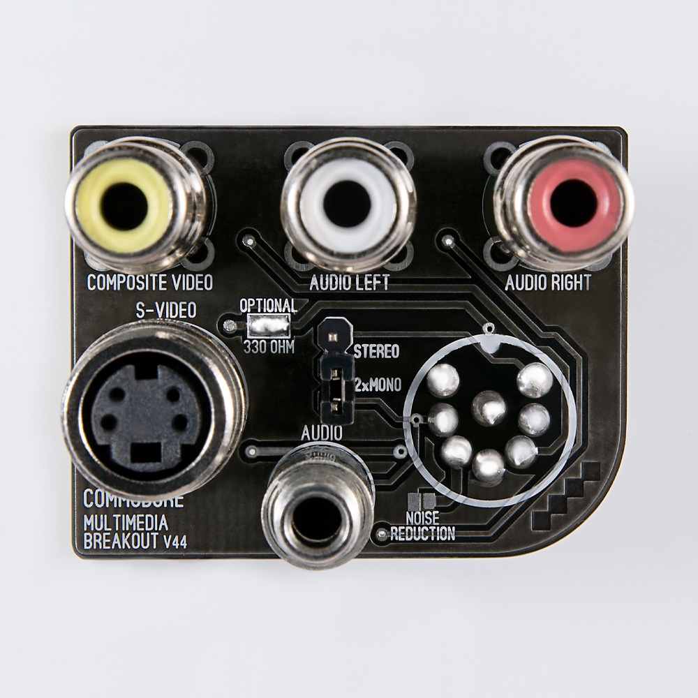 It is designed to plug directly into the back of your C64, and essentially gives the C64 a new set of A/V ports. For video, it has two ports: Standard 4-PIN female S-Video, suitable for connecting your Commodore to any S-Video TV or Projector using any standard Male–Male S-Video cable. Plus a single RCA female jack for Composite video.