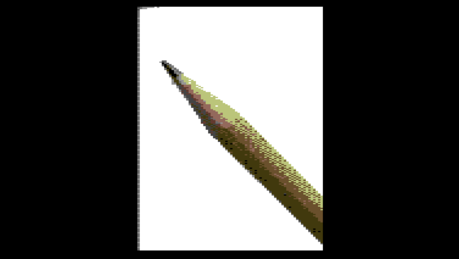 Sometimes an image will be on a solid color background with a large border. This can look nice on a modern computer with high screen resolution, but is often wasteful on the C64 leaving a small low-resolution conversion of the important part of the image surrounded by empty space.