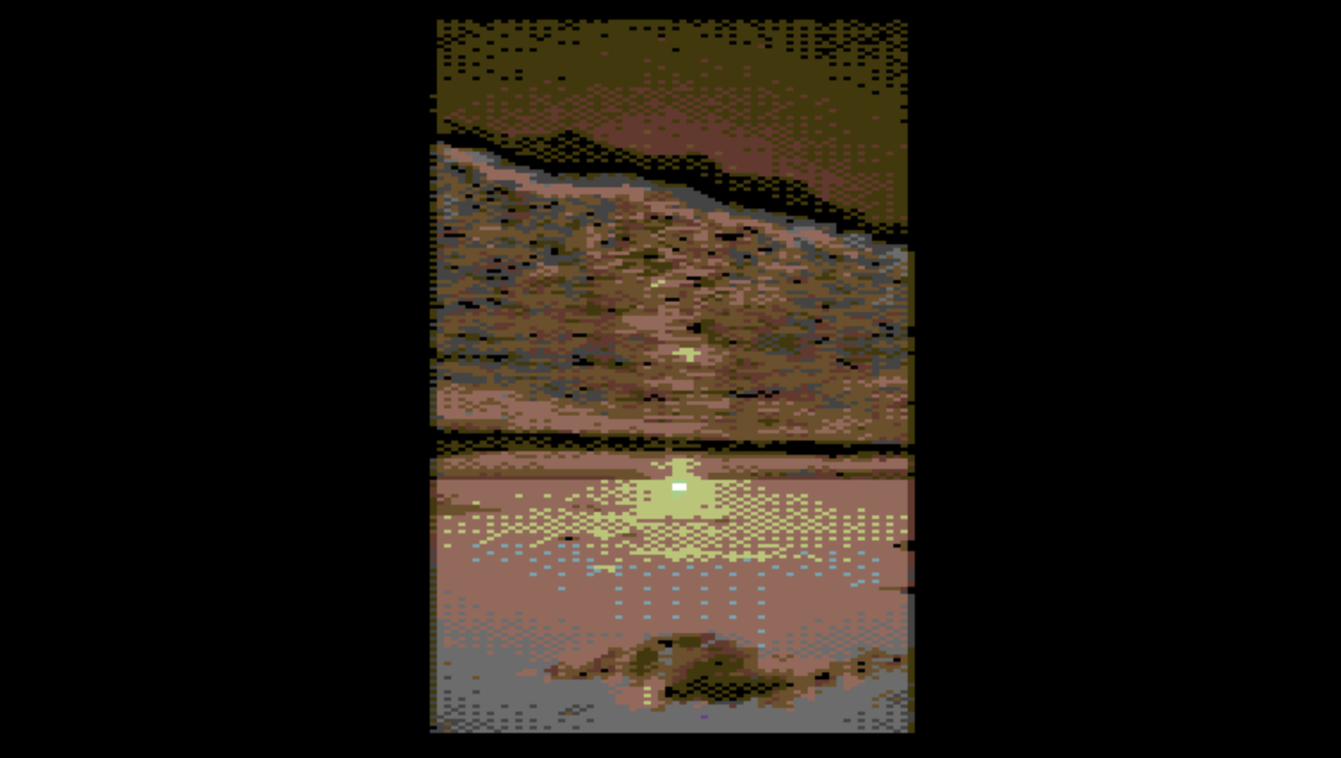 Sunset Scene - and the same image with brightness turned down.Alternatively, some images may be too dark, such as scenes from a movie where the room is dark or the lighting is low. The same problem exists when converted to the C64; the colors may be predominently black, brown or dark grey since these are dark colors. This can be equally difficult to make out with lots of definition lost.