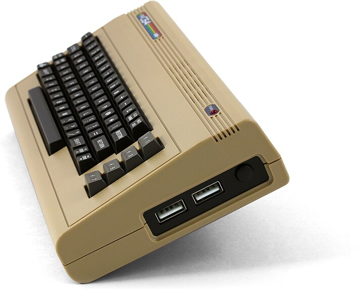 TheC64 is a product created by Retro Games Ltd.1 The mini version does not have a functional keyboard, but you can connect a USB keyboard to one of its USB ports. The full-sized version is unofficially referred to as the Maxi, to distinguish it from its diminutive sibling. The Maxi has a full-sized and fully functional keyboard.