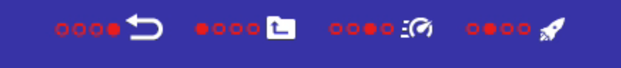 The filled red dots correspond with the buttons on the joystick. The left-most dot is to go up a directory, press A to trigger this. The second red dot to the left is for the rocket ship, this launches the select file, such as mounting a disk or cartridge image, press B to trigger this.
